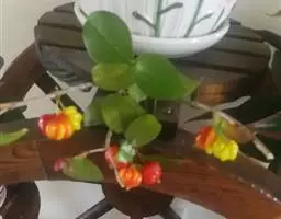花单生或2-3朵排成聚伞花序;萼管钟形,长5毫米,有毛,萼帽近圆形,长7-8毫米,不规则裂开;花瓣长1-1.4厘米,白色;雄蕊长6-9毫米;子房下位,与萼合生,花柱与雄蕊同长。浆果球形、卵圆形或梨形,长3-8厘米,顶端有宿存萼片,果肉白色及黄色,胎座肥大,肉质,淡红色;种子多数。