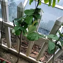 选直径1.2-1.5厘米的2-3年生枝条,在距枝梢顶端40-60厘米处环剥,环剥宽2-3厘米,包上生根介质。包生根介质前用吲哚丁酸(IBA)水溶液或羊毛脂涂环剥口,能促使早发根,根量多,成活率也高。2个月后,新根生长密集时将其锯离母株假植。发二次新梢并转绿后种植。
