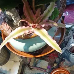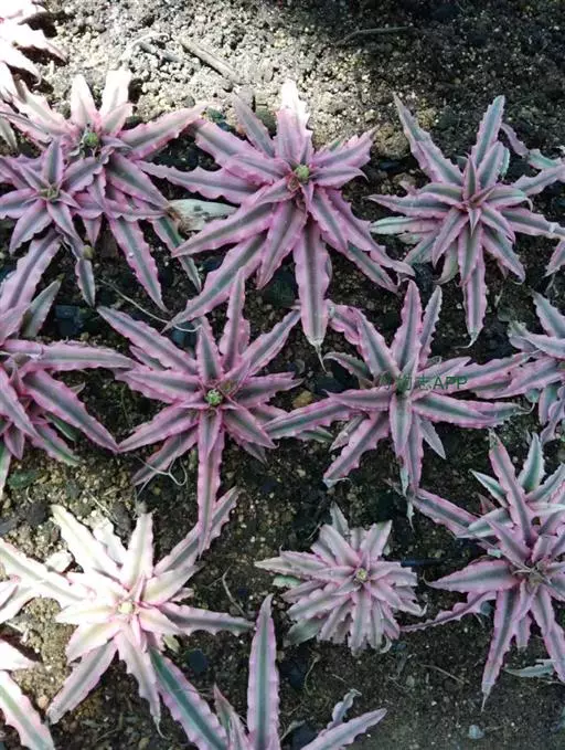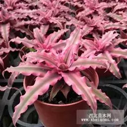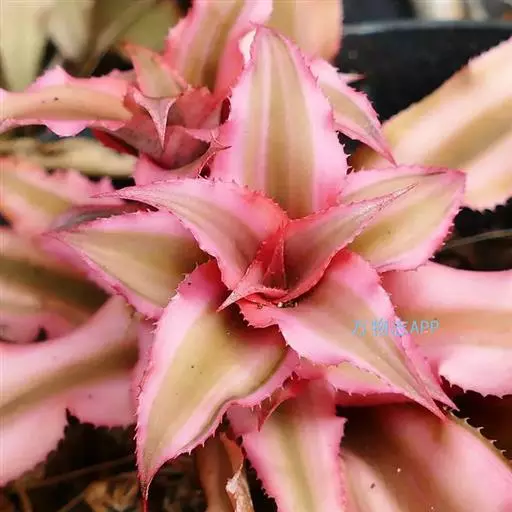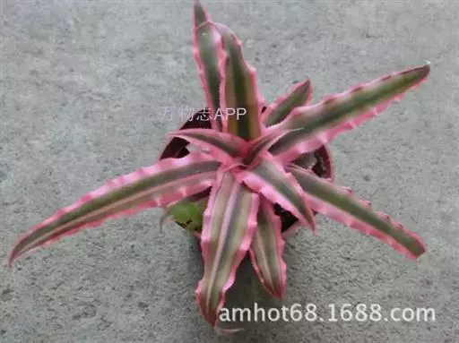 彩叶凤梨 L.B.Sm.) 凤梨科多年生常绿草本。株高25-30厘米,茎短。叶革质,带状,常基生,…