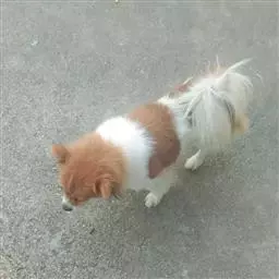 步态:吉娃娃动作迅速、坚定,具有很强的后躯驱动力。从后面看,后腿间始终保持相互平行,后脚落脚点始终紧跟前脚。前后腿都倾向于向重力中心线略靠,使速 红白花吉娃娃 度加快。从侧面看,前躯导向配合后躯驱动,昂首阔步。行动中,背线保持水平、稳定。文雅而且不费力,前肢舒展、结实,后躯推动力强。从侧面看时,步幅恰当,从正面和后面看时,行走呈直线,这是因为具有健全的骨骼及肌肉的原因。