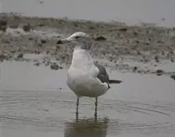 灰翅鸥,夏羽头、颈、腰、尾白色;肩、背和翅上覆羽鸽灰色。冬羽和夏羽相似,但头和颈具淡褐色纵纹,有时…