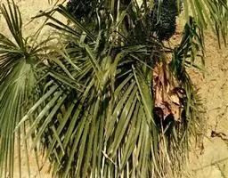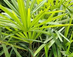 细叶棕竹,灌木,茎细如竹,多数聚生,有网状叶鞘。叶半圆形,掌状深裂,裂片狭长,阔线形,软垂,裂片7…