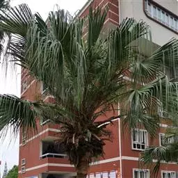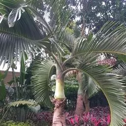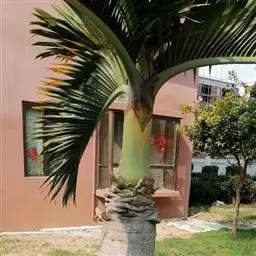 大型常绿单生乔木,极像食用椰子树,但果实细小,红色;叶片长而宽,叶片浓密、翠绿;株型硕大,茎有环状叶痕。 单干,高达5-9米,最高可达25米,树干基部直径约80厘米。羽状复叶,小叶线型,排列整齐,树形优美。