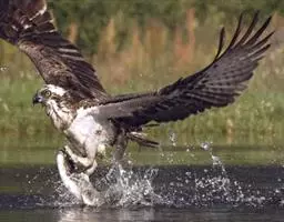 芬兰鹗湖面一次成功捕捉两条鳟鱼