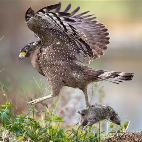 乌雕是隼形目鹰科雕属鸟类,别名有花雕、小花皂雕。通体为暗褐色,背部略微缀有紫色光泽,…
