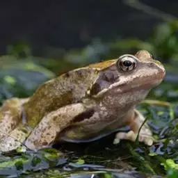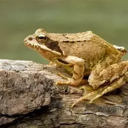 林蛙又称雪蛤,广泛分布于中国北部地区,西伯利亚、朝鲜也有分布。林蛙与蛤蟆和田鸡是完全不同的动物。林蛙头部扁平,四肢较细长,体长70~80毫米;鼓膜圆,鼓膜部有三角形黑褐色斑;体背多为土黄色,一般在疣上散有深色的斑点;背褶在鼓膜上方斜向外侧弯曲。林蛙以陆栖为主,常在没有强烈光照、湿润凉爽的环境中生活,主要栖息于山林、沼泽、水塘、水坑和水沟等静水水域及其附近,以林间草地为多。林蛙行动敏捷,跳跃力强,主要以多种昆虫为食,例如苍蝇、蚊子等 。