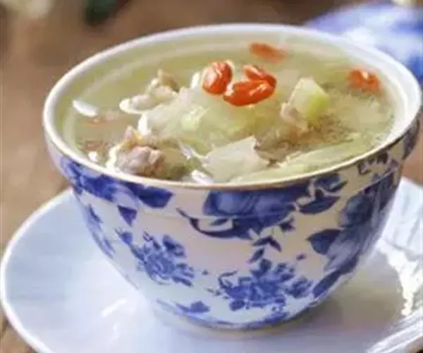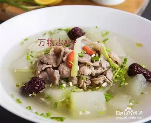 原料:冬瓜100克,瘦羊肉80克,枸杞3克,生姜10克,葱10克。