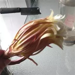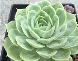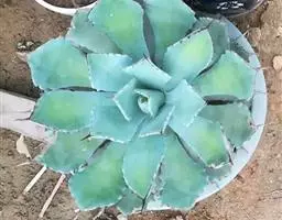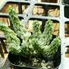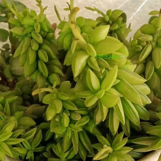 厘米,先端尖、基部棒糙形,一侧中间圆弧形突出,另一侧平直,弧形一侧的边缘较薄,有透明的条纹,平直的一侧边缘厚,整个叶就像一把斧子。带粉的灰绿色。花序很长,花黄绿色。