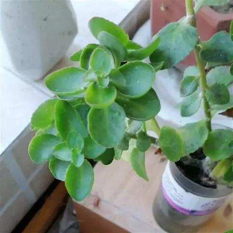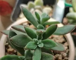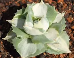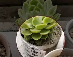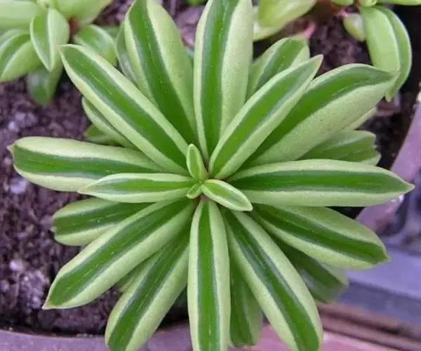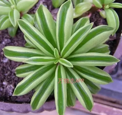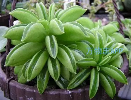 肉质小灌木,茎10厘米长。叶顶端轮生,长5—6厘米、宽1.7厘米、厚0.6