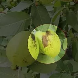 防治方法:应从幼果开始至果实膨大期,用防病药物如800倍托布津,或500倍铜氨合剂喷射果面,并做好冬季喷药清园。