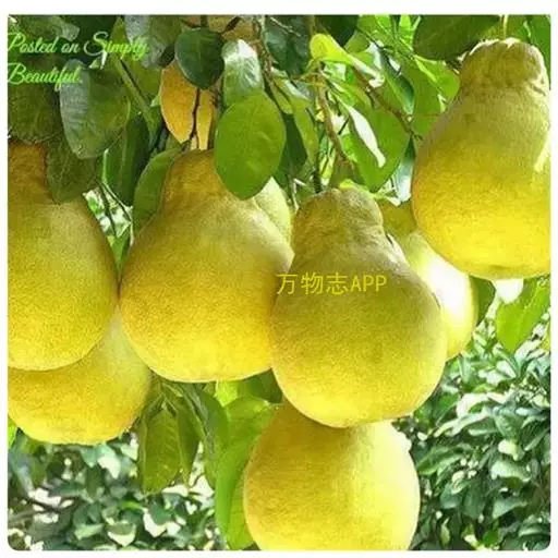 果圆球形,扁圆形,梨形或阔圆锥状,横径通常10厘米以上,淡黄或黄绿色,杂交种有朱红色的,果皮甚厚或薄,海绵质,油胞大,凸起,果心实但松软,瓢囊10-15或多至19瓣,汁胞白色、粉红或鲜红色,少有带乳黄色;种子多达200余粒,亦有无子的,形状不规则,通常近似长方形,上部质薄且常截平,下部饱满,多兼有发育不全的,有明显纵肋棱,子叶乳白色,单胚。花期4-5月,果期9-12月。