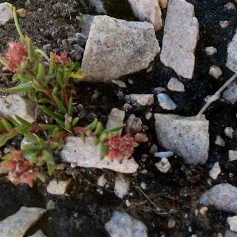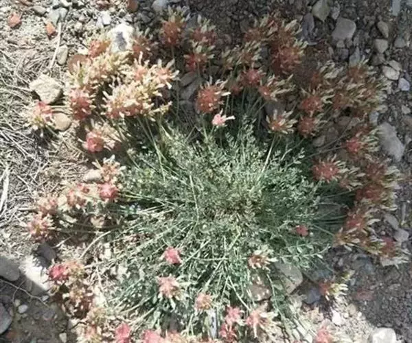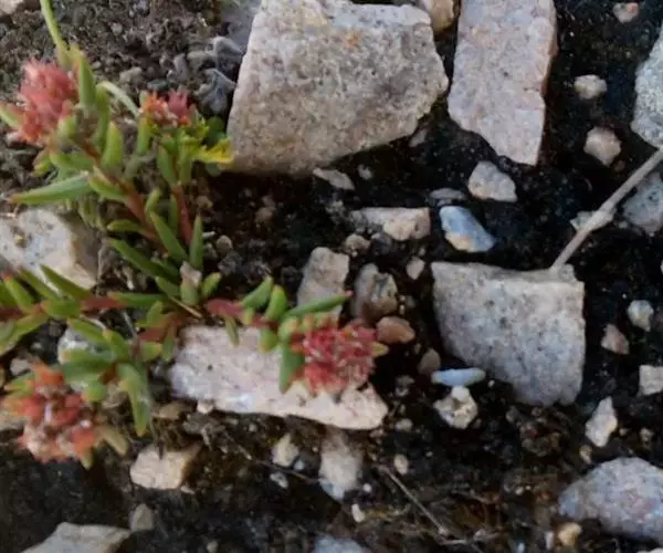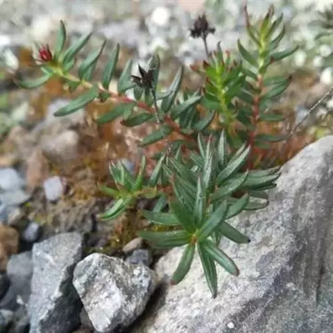 多年生草本。根颈粗壮,分枝,地上部分常被有残留的老枝。花茎聚生主轴顶端,长5-28厘米,直立或弯曲,不分枝。叶互生,线形至宽线形,长7-10毫米,宽1-2毫米,先端稍急尖,基部无柄,全缘。花序聚伞状,有4-7花;萼片5,线状披针形,长4毫米,宽0.7-0.9毫米,先端渐尖,基部宽;花瓣5,白或红色,披针状长圆形,直立,长8-11毫米,宽2.3-2.8毫米,先端渐尖,有较长的短尖,边缘平直,或多少呈流苏状;雄蕊10,较花瓣短,对萼片的长7毫米,对花瓣的长3毫米,着生花瓣基部上3毫米处;鳞片5,横长方形,长0.4毫米,宽0.8-1毫米,先端微缺;心皮5,卵状长圆形,直立,长6-9毫米,基部1-1.5毫米合生;种子长圆形,长1.2毫米,有微乳头状突起,有狭翅。花期6-7月,果期8月。 [1-2]