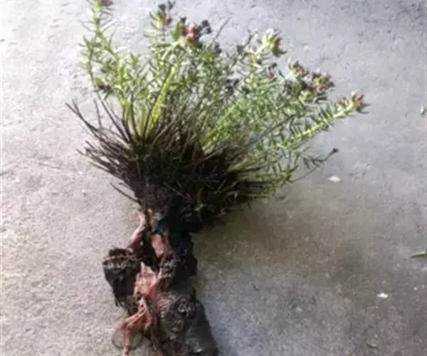 小丛红景天也可用根茎进行繁殖, 生长2~ 3 a 后采收。采集野生根茎或者在采收时将大的根茎剪下作种栽, 先将根茎剪成3~ 4 cm长的根茎段, 在阴凉处晾4~ 6 h, 使种栽伤口表面愈合。栽植时, 先开4~ 5 cm 深的沟, 将种栽按行距20~ 25 cm, 株距5~10 cm, 将根茎段的项芽朝上斜放在沟内,覆土5~ 6 cm, 栽后适当镇压, 成活率一般在95%以上。