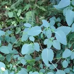 叶互生,具柄,叶片膜质,长圆形或长圆状披针形,长5-9 (-12) 厘米,宽2.5-4厘米,顶端渐尖,基部楔状下延成长1-2.5的叶柄,常具2球形腺体,边缘具圆齿状齿,齿端微凹,具小尖,侧脉9-12对,上面深绿色,下面淡绿色。