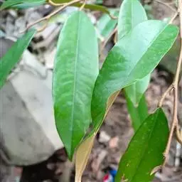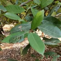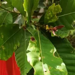 叶二列,叶片革质,长椭圆形,卵状椭圆形或兼有倒卵状椭圆形,长7-15厘米,宽3-6厘米,顶部渐尖或骤狭急尖,短尾状,基部近于圆或宽楔形,通常一侧略短且偏斜,叶缘在中部以上有锯齿状锐齿,很少兼有全缘叶,中脉在叶面至少下半段微凸起,上半段微凹陷,支脉明显或甚纤细,成长叶叶背淡银灰色;叶柄长1.5-2.5厘米。