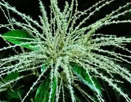 花序轴无毛,雄穗状花序通常单穗腋生,雄蕊12-10枚;雌花序长达15厘米。