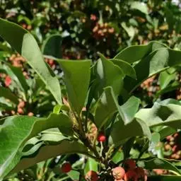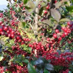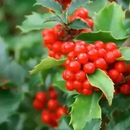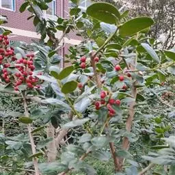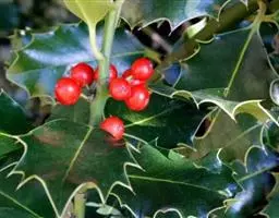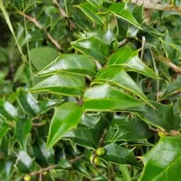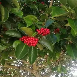 枸骨(学名:Ilex cornuta)又名猫儿刺、老虎刺等,为常绿灌木或小乔木,叶形奇特,碧绿光亮,四季常青,入秋后红果满枝,经冬不凋,艳丽可爱,是优良的观叶、观果树种,在欧美国家常用于圣诞节的装饰,故也称“圣诞树”。