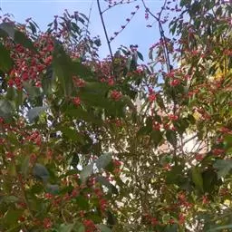 果球形,直径8~10毫米,成熟时鲜红色,基部具四角形宿存花萼,顶端宿存柱头盘状,明显4裂;果梗长8~14毫米。分核4,轮廓倒卵形或椭圆形,长7~8毫米,背部宽约5毫米,遍布皱纹和皱纹状纹孔,背部中央具1纵沟,内果皮骨质。花期4~5月,果期10~12月。