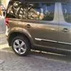 车身部分保留了隐藏式A柱等所有晶锐车型的特征,侧面包括轮眉和车门的下半部都被塑料包围包裹起来,理论上可以防止飞溅的石子破坏车漆,尾部同样是保险杠增加了塑料包围,大尺寸 斯柯达Fabia Scout 的包围几乎完全将后杠包裹起来,底部的护板改用与前部下唇相似的银色金属风格装饰板。