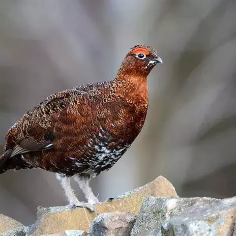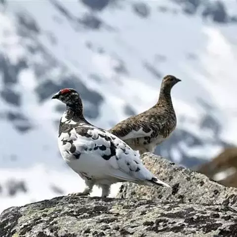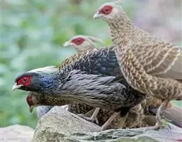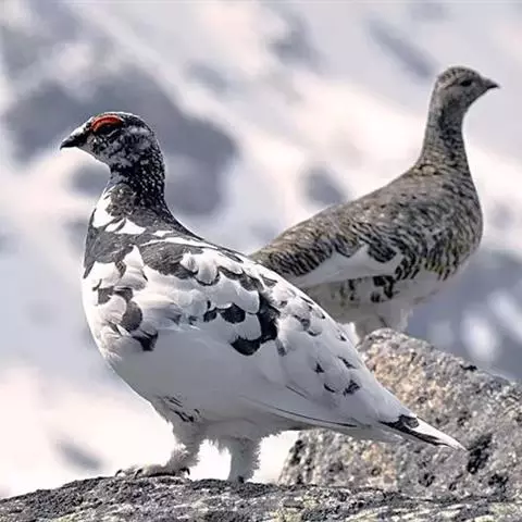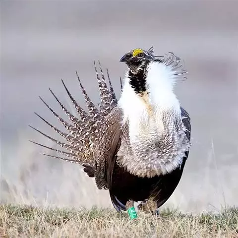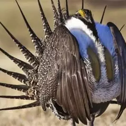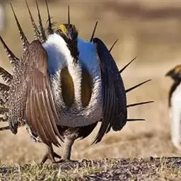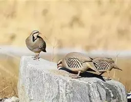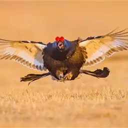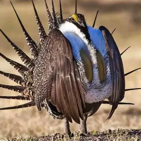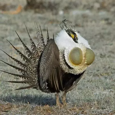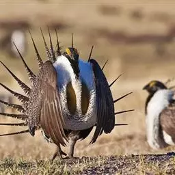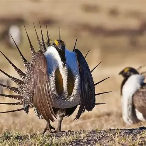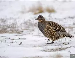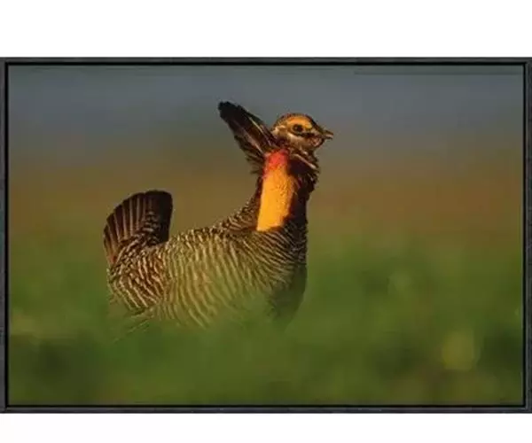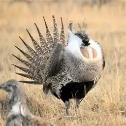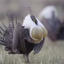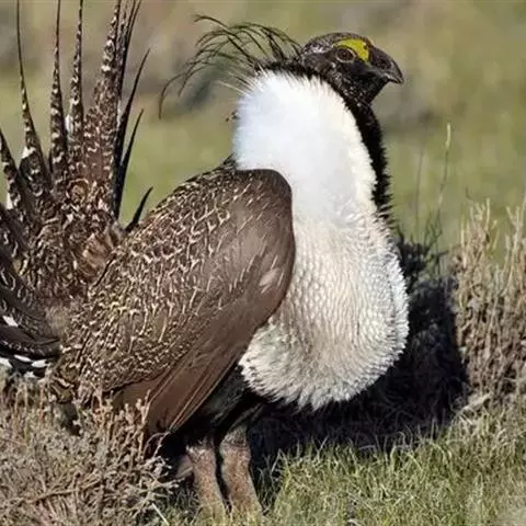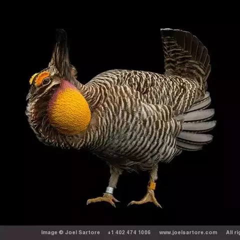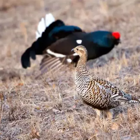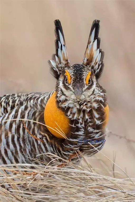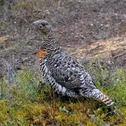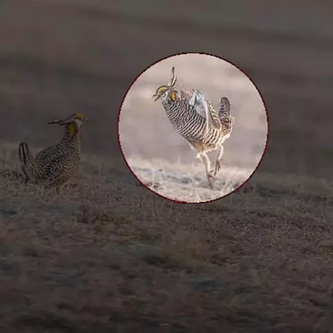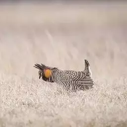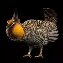 草原松鸡(学名:Tympanuchus cupido):体长43-47厘米,翼展69厘米,体重900-1100克。雄鸟头顶耸立的针状羽毛形成的两个尖顶羽冠。颈部和眼睛上方有黄橙色的膨胀的大气囊。雌鸟的上体是锈褐色,夹杂着黑色及皮黄色的的横斑,下体较淡。在交配季节,雄鸟会发出一个800米远都能听到的鸣叫声,胸部的气囊也会放大。虹膜褐色,嘴角黄色或白色,跗蹠被羽到趾。