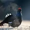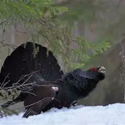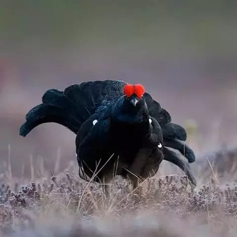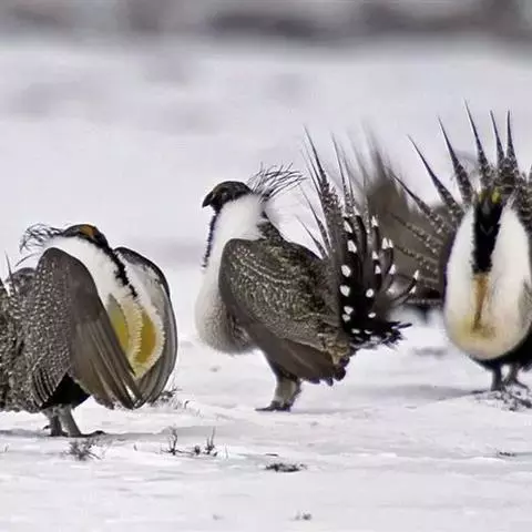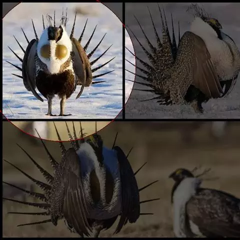 在繁殖季节会举行多姿多采、美仑美奂的炫耀表演。炫耀表演往往在“比舞场”或“竞技场”上进行,由许多只雄鸟一起参加,称为“比舞”表演。各种炫耀方式中,它们先上下扇动有尖头的尾巴,再鼓起胸前两块黄色气囊,把头后昂在颈向前振起双翼羽中,形成一种奇形怪状的姿态。雄松鸡配合着自己羽毛摩擦发出的声响,还有从黄气囊吹出来的布布音调,对着雌松鸡翩翩起舞。