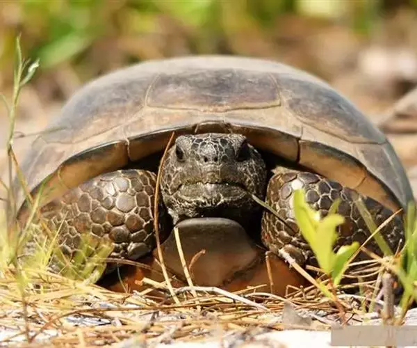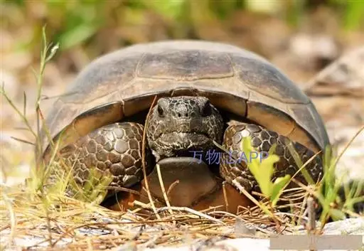 哥法地鼠龟(学名:Gopherus polyphemus):又名佛州地鼠龟,最大甲长38厘米。前肢第1双趾爪根部至第3双趾爪根部的间隔同于其后肢第1双趾爪根部至第4双趾爪根部的间隔。背甲略带黄色,平滑而细长。头部硕大,前端较钝,棕灰色;眼睛的虹膜为深棕色。后脚比前脚小。雄性的腹甲内凹。
