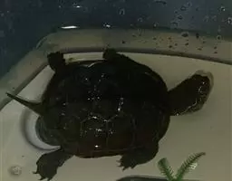大型的玻璃水族缸适合用来养新孵出的幼龟,空间足够运动且高度够高以防幼龟跌落。报纸、纸巾、兔子或天竺鼠的粪丸、贫瘠的干泥土、或花园土都可以用来铺在缸底,无论铺什么,都必须保持干净。要有一个可供躲藏的箱子让幼龟睡觉,不能跟成龟养在一起,否则可能会受伤害。