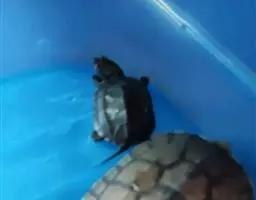 气温在21℃以上时,即可将雏龟放牧到室外,并让其尽可能在阳光下取暖;无论如何,也必须随时提供遮阴。雏龟应该以鸡笼或类似的网具罩起来,以防鸟、猫、狗或老鼠猎食。随时查看,雏龟很容易翻覆。绝不要将雏龟放在室外的水族缸里,在室外水族缸会像温室一样加热,雏龟极易过热而死。