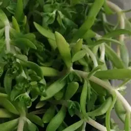 玉缀,别名翡翠景天景天科景天属常绿或半常绿多肉植物。植物匍匐下垂,翠绿色。叶小,多汁,纺锤形,、密…