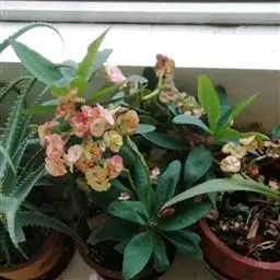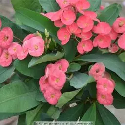 虎刺梅:别称铁海棠,是蔓生灌木植物。茎多分枝,长60-100厘米,直径5-10毫米,具纵棱,密生硬…