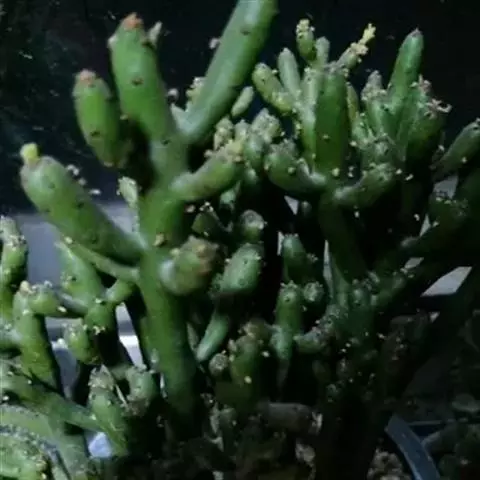灯美人是景天科的园艺品种,多肉植物。叶片近柱状,丛生,在日照时间长、温差大的环境下会呈现橙粉色。