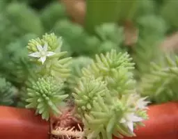 薄雪万年草别名矶小松,景天科景天属多年生草本植物,其细小的蓝绿色棒状叶片环绕生长于茎端,…