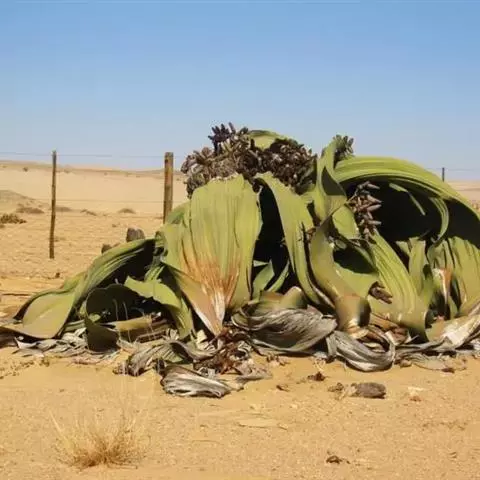 百岁兰是百岁兰科百岁兰属植物。树干非常短矮而粗壮,呈倒圆锥状,高很少超过50厘米,…