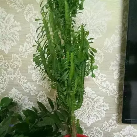 霸王鞭,是大戟科大戟属的多年生肉质灌木,全株含白色乳汁;茎直立,茎基部圆柱形,上部4~5纵棱,…
