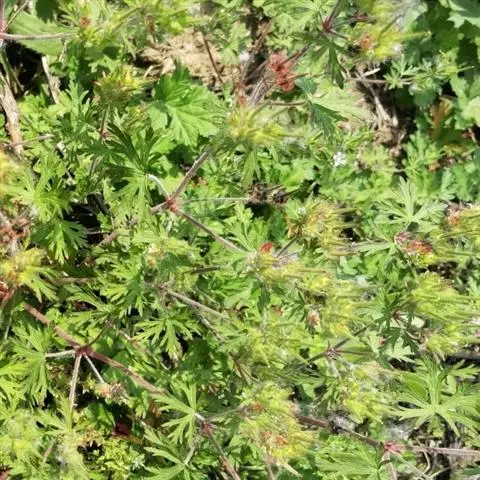 野老鹳草(学名:Geranium carolinianum L. )是牻牛儿苗科,老鹳草属一年生草本植物,高可达60厘米,根纤细,具棱角,基生叶早枯,茎生叶互生或最上部对生;托叶披针形或三角状披针形,外被短柔毛;叶片圆肾形,基部心形,裂片楔状倒卵形或菱形,小裂片条状矩圆形,先端急尖,花序腋生和顶生,花序呈伞形状;苞片钻状,萼片长卵形或近椭圆形,花瓣淡紫红色,倒卵形,蒴果被短糙毛,果瓣由喙上部先裂向下卷曲。4-7月开花,5-9月结果。