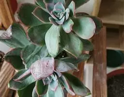 蓝石莲是景天科、拟石莲花属的多肉植物。茎部粗壮,成熟植株茎部木质化。叶片莲座型密集排列,株径不会很大,…
