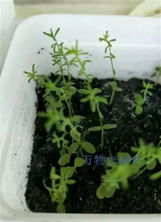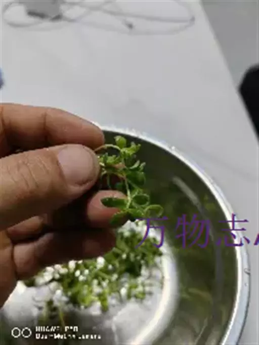 一年生草本,高30—40厘米;茎纤弱,多分枝。叶对生,二型,茎先端浮于水面的叶密集呈莲座状,倒卵形或倒卵状匙形,长4—6毫米,宽约3毫米。