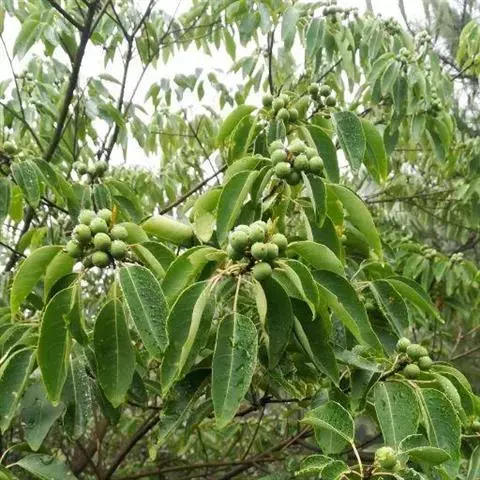 乌桕 Small)大戟科乌桕属木本植物。树皮为暗灰色,有竖向的裂纹;枝条展开很广,有皮孔;叶片互生,…