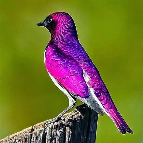 粉红椋鸟:中等体型,成鸟体长19-22厘米,体重60-73克,飞羽、尾羽为亮黑色,雌鸟与雄鸟毛色相似,…
