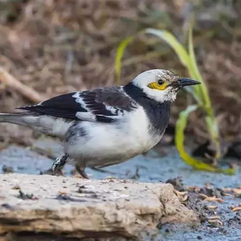 斑椋鸟:是中等体型的黑白色椋鸟,体长24厘米。头顶、头侧、翼斑、腰及腹部白色,喉、胸及上体余部黑色,…