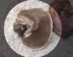 浅灰青褐色至灰黄色,表面粗糙似有绒毛或近龟裂,边缘内卷或呈波状。菌肉白色,厚。菌褶污白色,