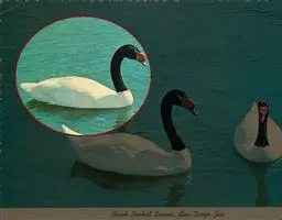 是天鹅家族五大成员之一,它不像大天鹅和小天鹅因周身雪白而显得神圣纯洁,也不及黑天鹅因身材好而感觉神秘优雅。除了长在颈部的羽毛黑而发亮外其余羽毛均为白色,这使得它们没有了其他天鹅那样的圣洁和神秘,却多了一种亲切和自然。