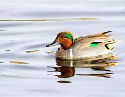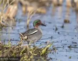 绿翅鸭是小型鸭类,体长37厘米,体重约0.5千克。嘴脚均为黑色。雄鸟头至颈部深栗色,…