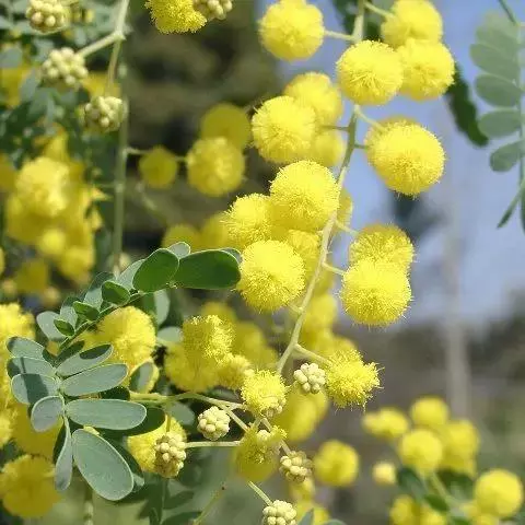 金合欢亚属:主要特征为托叶退化成刺,其他部位无刺,叶为二回羽状复叶,刺球花。