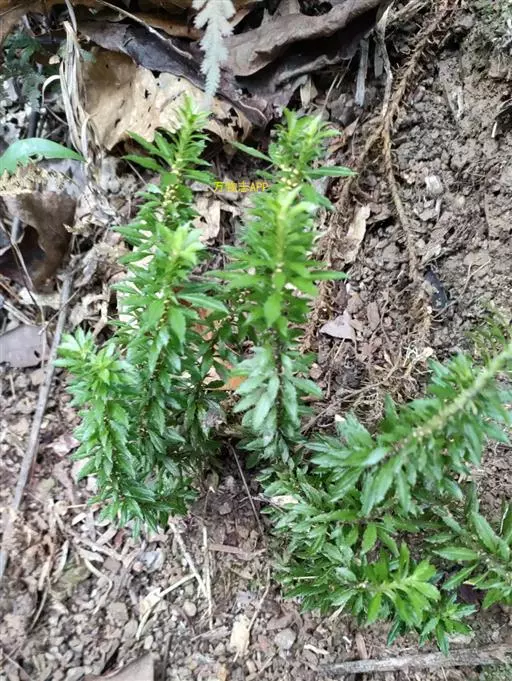 蛇足石杉(学名:Huperzia serrata(Thunb. ex Murray) Trev. ),又名蛇足石松。为石杉科多年生草本。根须状,植株高10-30厘米。茎下部斜升至平卧,上部直立,具少数二歧式分枝,枝端常具芽胞。生于海拔300-2700米的林荫下湿地、灌丛下、路旁或沟谷石上。