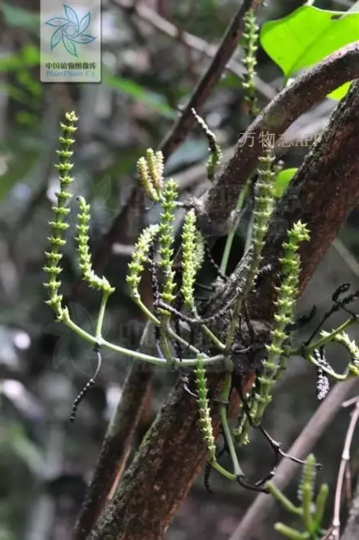罗浮买麻藤,藤本,茎枝圆形,皮紫棕色,皮孔浅不显著。产于广东。