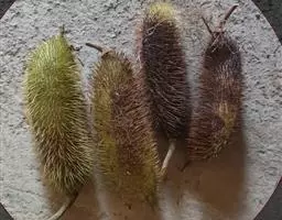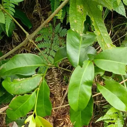 叶片薄或稍带革质,矩圆形或矩圆状卵形,长10-18厘米,宽5-8厘米,先端短渐尖,基部近圆形或宽楔形,侧脉9-11对,明显,由中脉近平展伸出,小脉网状,在叶背较明显,叶柄长8-10毫米。雌雄花均未见。成熟.种子矩圆状椭圆形,长约2.5 厘米,径约1.5厘米,顶端微呈急尖状,基部宽圆,无柄,种脐宽扁,宽3-5毫米。