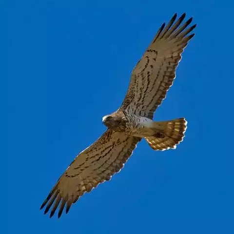 靴隼雕:是鸟纲、鹰科的中型鹰类。全长约40-53厘米,头、颈白色沾棕,纵贯以暗褐色轴纹,眉纹黑色。…