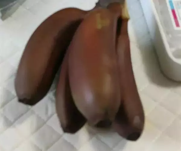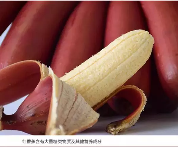 红皮香蕉20世纪70。年代从东南亚引入,属AAA群红绿蕉品种。假茎高3~4米,茎周长67~87厘米,除叶面呈绿色外,假茎、叶脉和中脉均呈暗紫红色。梳数、果数少,果指长17~20.5厘米,果皮暗紫红色,后期带绿条纹,果肉蛋黄色,肉质软滑,有特殊的兰花香味,果实总糖含量为20%~21%。红皮香蕉的产量低,株产10~20千克。该品种易突变为绿蕉,生长期较长,在15个月以上,抗病、抗寒力弱。红皮香蕉虽然缺点多,但由于其果皮为红色,有喜气的意思,不乏市场需求,已有商业化栽培。2003年3月份通过福建省农作物品种审定委员会审定 。