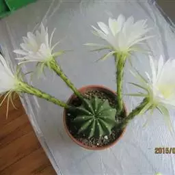 仙人球花 仙人掌科,仙人球属。植株单生或成丛。幼株球形,老株长成圆筒状,高可达75厘米,直径12-…